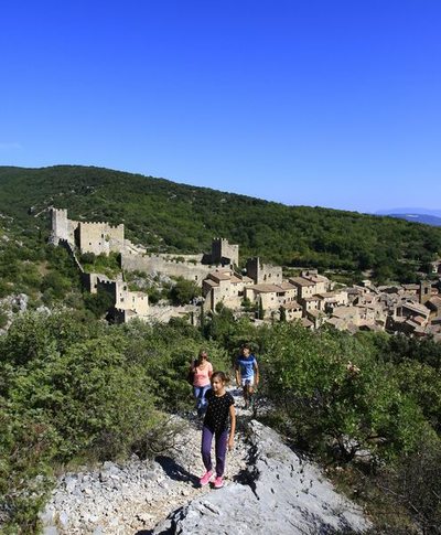 La descente propose des parties ombragées et des vues spectaculaires sur le village de caractère de Saint Montan enchâssé dans son verrou rocheux.