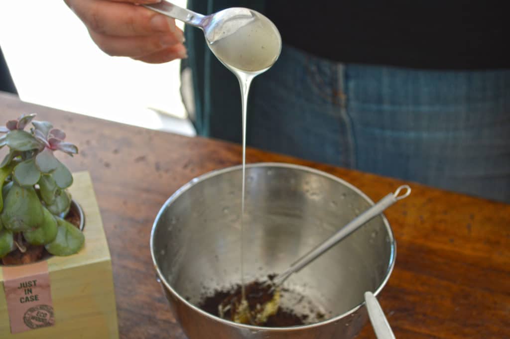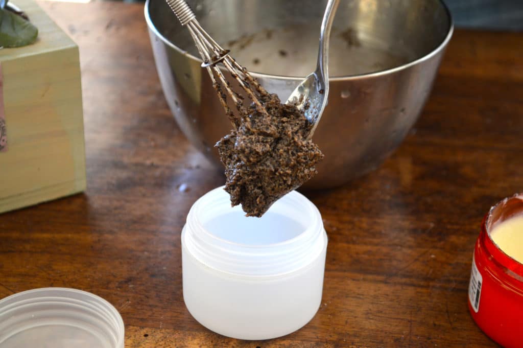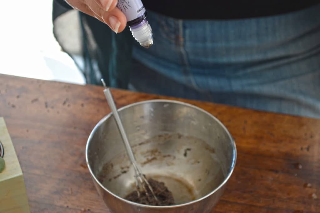 Dans un bol, mettre le beurre de karité, le marc de café et le miel de lavande. Bien remuer afin d’obtenir une texture crémeuse et homogène. Ajouter ensuite l’huile essentielle de lavandin. Mélanger à nouveau. Verser votre baume dans un contenant avec bouchon