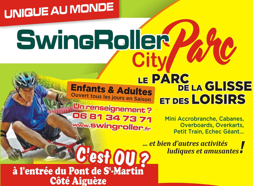 Une activité sportive et inédite, unique au monde! Initiation avec le concepteur au swingroller. De nombreuses pistes vous attendent avec des descentes à 10, 20km/h et beaucoup plus jusqu'au saut d'envol avec réception dans un filet pour les meilleurs!...