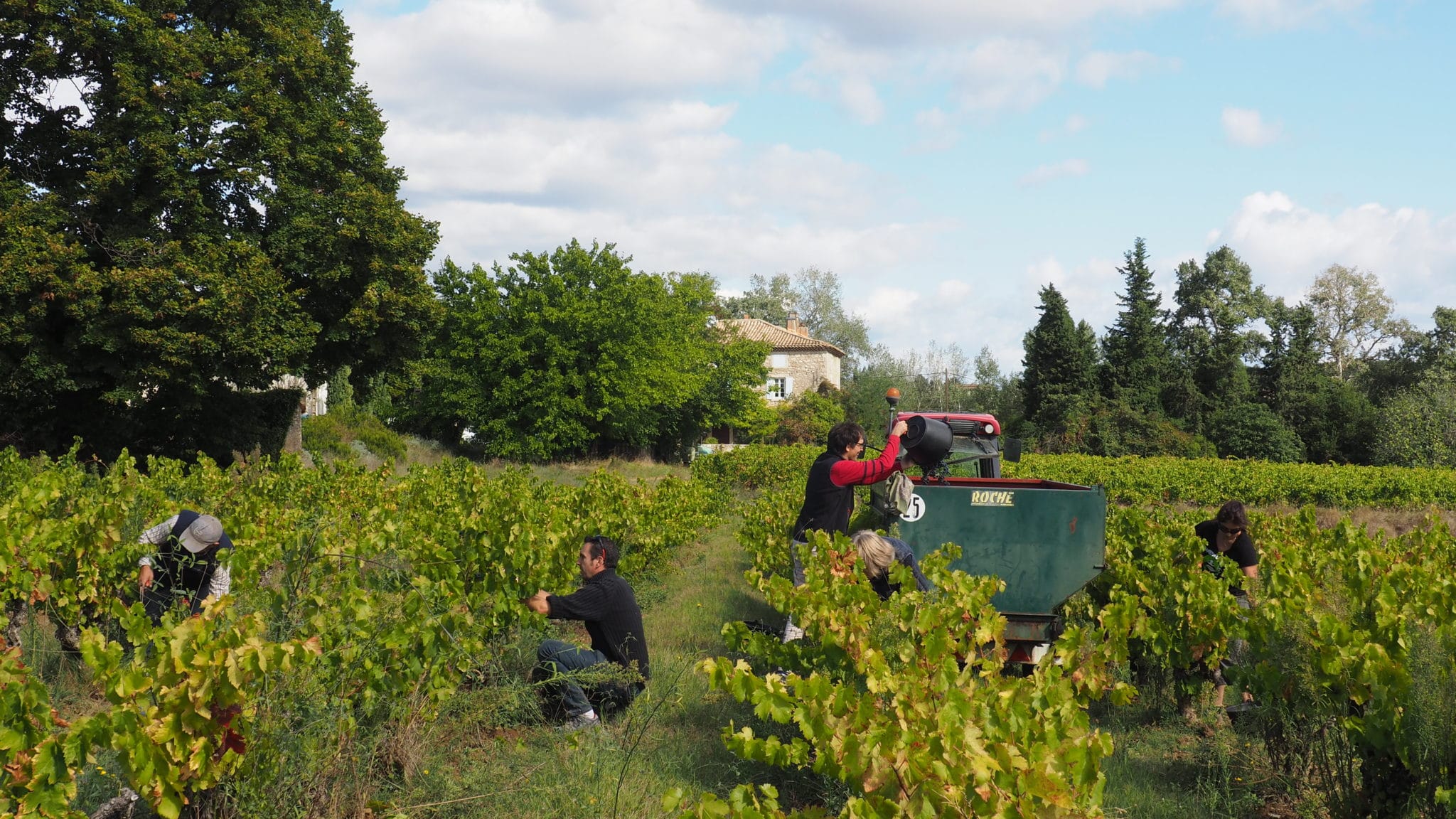 Seaux et sécateurs à la main, nous voilà dans les vignes, à deux pas de la maison, à écouter les bons conseils de l’homme averti. On sent le savoir-faire et l’expérience, une véritable passion de la vigne, le plaisir de partager avec nous. Jamais lassé par nos incessantes interrogations, Frédéric y répond toujours avec beaucoup de clarté et sans jugement.