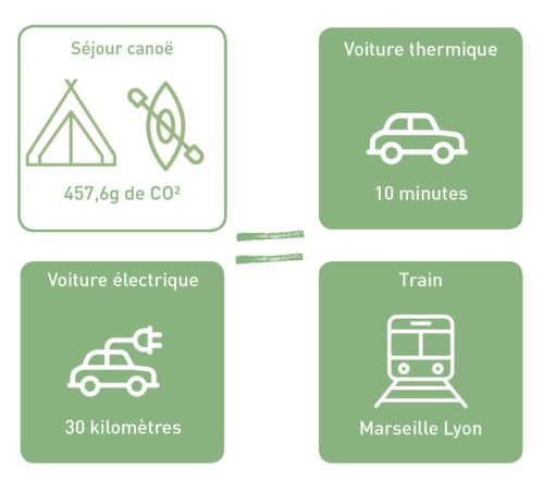 Sachez que ce séjour génère seulement 457,6g de CO2 par personne, l’équivalent d’un parcours de 10 mn en voiture thermique, 30 km en voiture électrique et un trajet Marseille-Lyon en train.