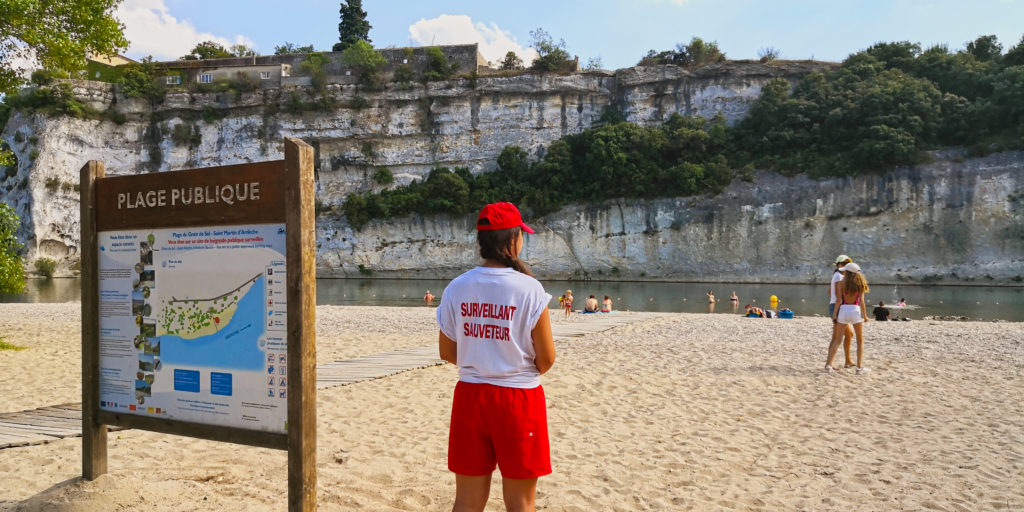 Les Gorges de l’Ardèche, c’est aussi la baignade ! Vous trouverez des plages aménagées à Saint-Martin-d’Ardèche, labellisées Pavillon Bleu, et Saint-Just-d’Ardèche. Ce label garantit une qualité de l’eau exemplaire et favorise un comportement respectueux de la nature. Ces plages sont également surveillées pendant l’été, pour préserver la sécurité de tous.