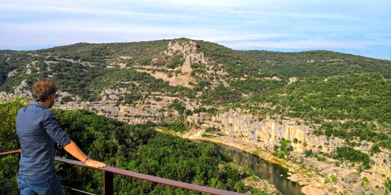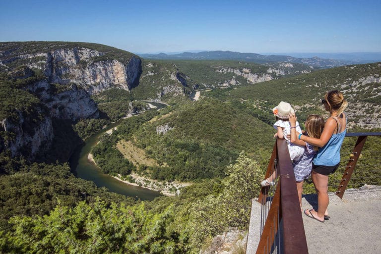 En voiture, à moto ou à vélo pour les plus sportifs, la Réserve Naturelle des Gorges de l’Ardèche se visite aussi sur une route panoramique suivant les méandres de la rivière. 11 belvédères aménagés entre Saint-Martin et Vallon-Pont-d’Arc offrent des vues plongeantes sur des paysages à couper le souffle. En roulant dans le sens de la rivière, au bord des falaises, le plaisir et les sensations seront intenses.
