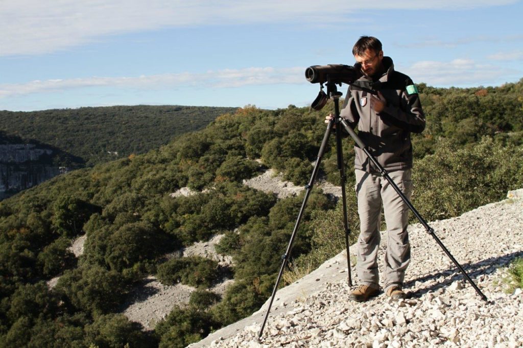 Plus précisément dans la Réserve Naturelle Nationale des Gorges de l’Ardèche, en 2020, on comptait 5 couples, soit 10 individus, et c’est grâce au travail du SGGA (Syndicat de Gestion des Gorges de l’Ardèche) en collaboration avec la LPO (Ligue pour la Protection des Oiseaux) que, chaque année, les vautours reviennent pour se reproduire dans les Gorges. Dans le but de favoriser leur reproduction et leur retour annuel dans les Gorges de l’Ardèche, toute l’équipe s’investit dans la mise en place de placettes de nourriture sur différentes zones de la Réserve à Aiguèze, Bidon et Saint Remèze. Afin de les identifier et surveiller les populations, les agents de la Réserve placent également des pièges photos.
