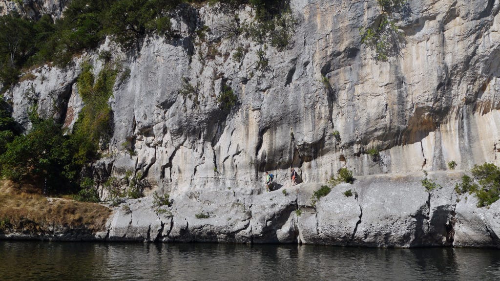 Les Gorges de l’Ardèche en rando, c’est grandiose, ça vaut bien quelques efforts, voire même quelques sensations ! Le sentier pédestre longe la rivière et ne comporte pas de difficultés majeures mais le chemin est parfois engagé et la progression n’est pas aussi facile que sur un terrain classique. Elle comporte notamment deux passages à gué, quelques mains courantes, des passages en surplomb de la rivière et même un passage dans une petite grotte. Elle s’adresse donc à des personnes qui ont l’habitude de marcher. Le sentier est faisable dans les deux sens. Pour des raisons logistiques, notre séjour est vendu dans le sens Vallon vers Saint-Martin (de l’amont vers l’aval), c’est aussi le sens du topo-guide que nous vous joindrons par mail. De bonnes chaussures de marche, des aquashoes (c’est le moment de sortir vos « méduses ») et un sac à dos suffisent.